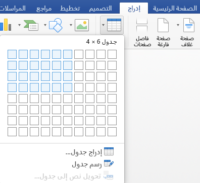 - حدد: صف أعلى/أسفل أو عمود يمين/يسار